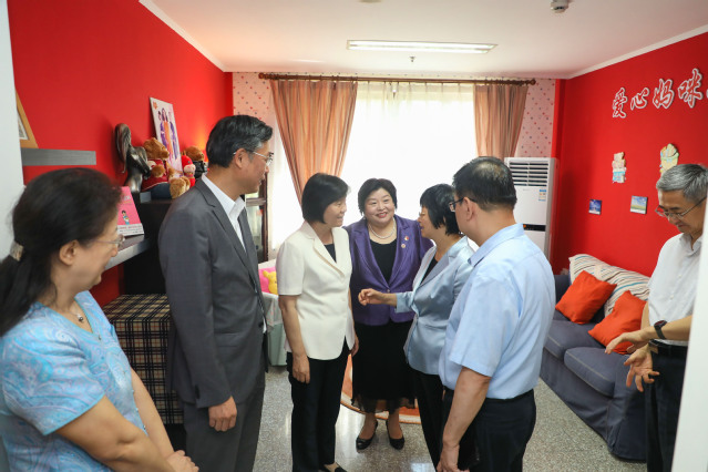 在座谈会前,沈跃跃一行参观了上外妇女之家与妈咪小屋。近年来,校妇工委一直将“妇女之家”、“妈咪小屋”作为女性人文关怀平台加以重点建设。学校目前共建成妈咪小屋21家,入选上海市总工会首批5星级爱心妈咪小屋。上外妇女之家荣获上海市“十佳妇女之家”示范点,妇工委设立专项经费,资助完成全校各二级部门“妇女小家”全覆盖。市妇联副主席翁文磊、上外党委副书记王静全程指导并参与本次调研工作及筹备工作。