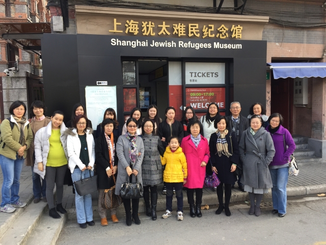 金贸学院教师一行首先到达位于虹口区长阳路62号的摩西会堂、又称“华德路会堂”的上海犹太人纪念馆,参观了会堂的主体建筑。透过一件件无声的陈列展品,老师们重温了当年在战争硝烟中善良的上海人民热情接纳并帮助那些背井离乡的犹太难民重建家园的感人之举。摩西会馆的西墙上刻满了当年避难在上海的13732个犹太人名字,令参观的老师们深深震撼。上个世纪三、四十年代纳粹疯狂迫害屠杀犹太人之时,上海是全球唯一的向犹太人敞开大门的城市。从1933年到1945年战争结束,上海先后接纳并保护了约三万名来自欧洲的犹太难民。不少犹太人在重返上海或是撰写回忆录中,都深深表达了对上海人民人道主义壮举感激的心声。老师们通过回顾这段70年前的特殊历史,对世界反法西斯战争又有了更直观更深入的体会,感动于上海人民把自家大门连同自己的心扉向犹太难民打开的真情,同时也感悟于当今和平世界的来之不易,坚定了珍惜幸福生活、努力工作的决心,为祖国的繁荣昌盛不断奋斗。