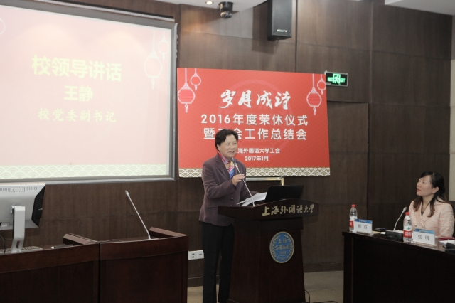 新年伊始,学期将尽。2017年1月5日下午,“岁月成诗”荣休仪式暨2016年度工会工作总结会在虹口校区MBA会议中心举行。荣休教职工代表、各部门总支书记、工会主席、校工会委员、校妇工委委员、文体协会社团负责人等100多人出席了会议,会议由校工会副主席顾蔚主持。