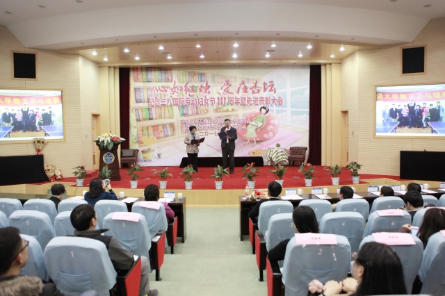 我校妇工委、女教师女干部联谊会开展的“教授有约 心灵家园”谈心窗口活动已坚持了12年,架起了师生心灵沟通的桥梁,获得上海市女大学生成才十佳案例,作为师德教育的典型受到解放日报支部生活的专访。在引领成才、全过程育人等方面发挥了积极作用。2016年,校妇工委发起“姐妹导师,相伴成长”师生牵手计划,并设立院系谈心日,重心下移,扩大覆盖面。会上,取材于谈心窗口活动中的真实案例,由文学研究院张曼副教授创作、校基金会副秘书长李然执导、校戏剧社排演的原创情景剧《桃李春风》,感动了现场的所有观众。随后,冯庆华副校长为参与“教授有约 心灵家园”谈心窗口的14个部门授牌,为罗雪梅等6位教师颁发了谈心窗口突出贡献奖。