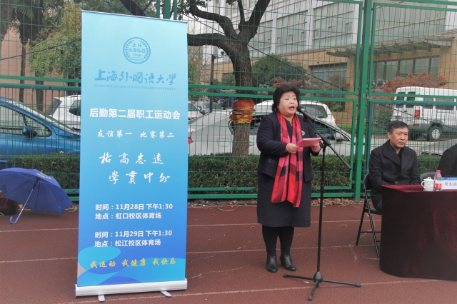 11月28日-29日,上外后勤第二届职工运动会在虹口和松江校区分别举行。校工会常务副主席于朝晖、副主席顾蔚、后勤党总支书记兼总经理张明、副总经理祝东海和各部门经理出席开幕式。运动会开幕式由后勤工会主席时雁主持。